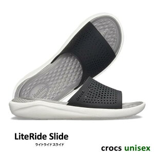 ・CROCS【クロックス】LiteRide Slide/ ライトライド スライド/ ブラック×スモーク|※※ メンズ レディース サンダル スポーツサンダル オフィス スリッパ シャワーサンダル ビーチサンダル リカバリーシューズ